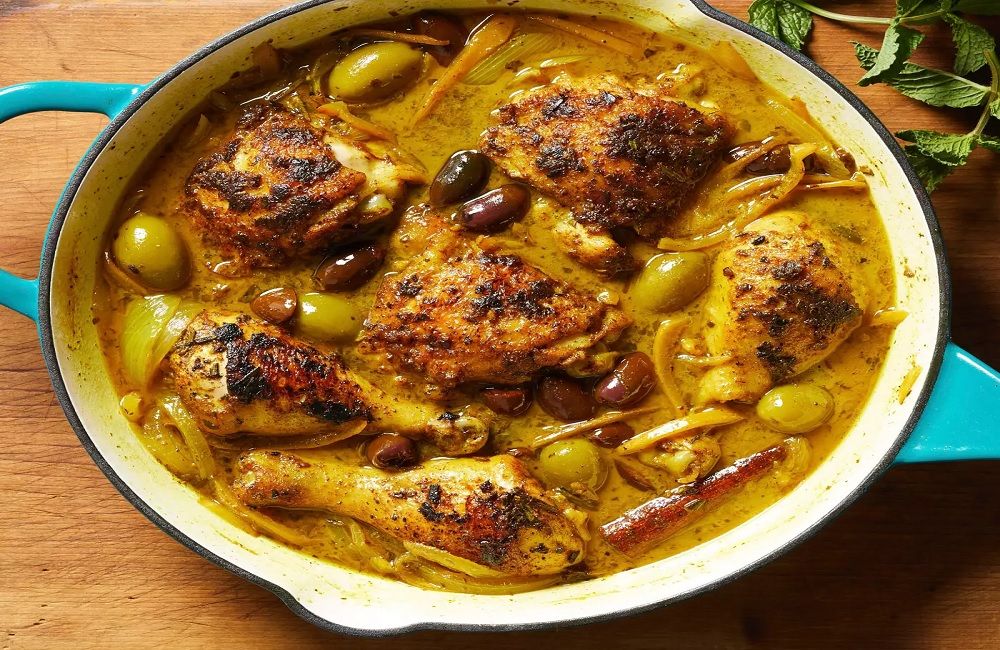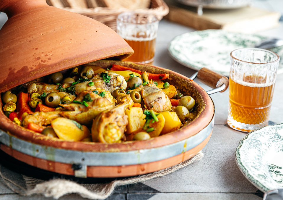 Tender chicken cooked with seasoned orzo creating comforting tagine flavours