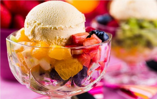 Chilled ice cream served with fresh fruits for delightful dessert